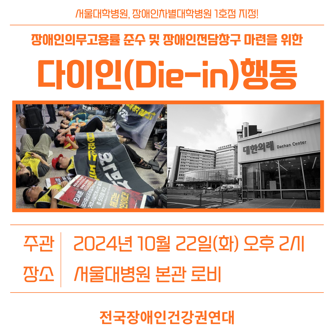 [전국장애인건강권연대] 서울대학병원, 장애인차별대학병원 1호점 지정! 장애인의무고용률 준수 및 장애인전담창구 마련을 위한 다이인(Die-in)행동