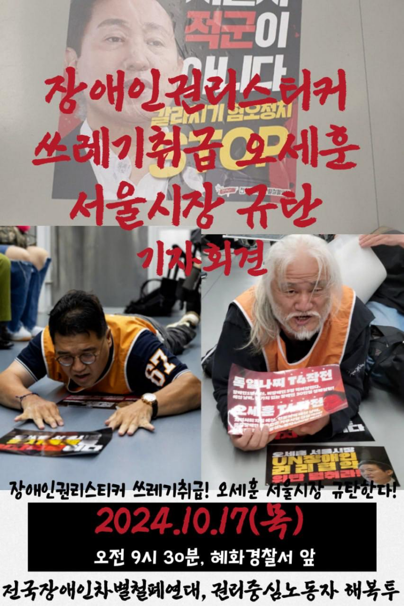 장애인권리스티커, 쓰레기 취급 오세훈 서울시장 규탄 기자회견